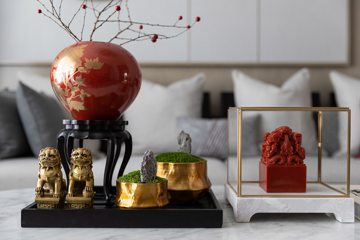 中国红的饰品东方气息深厚浓郁,装饰空间之中,彰显温雅气质。