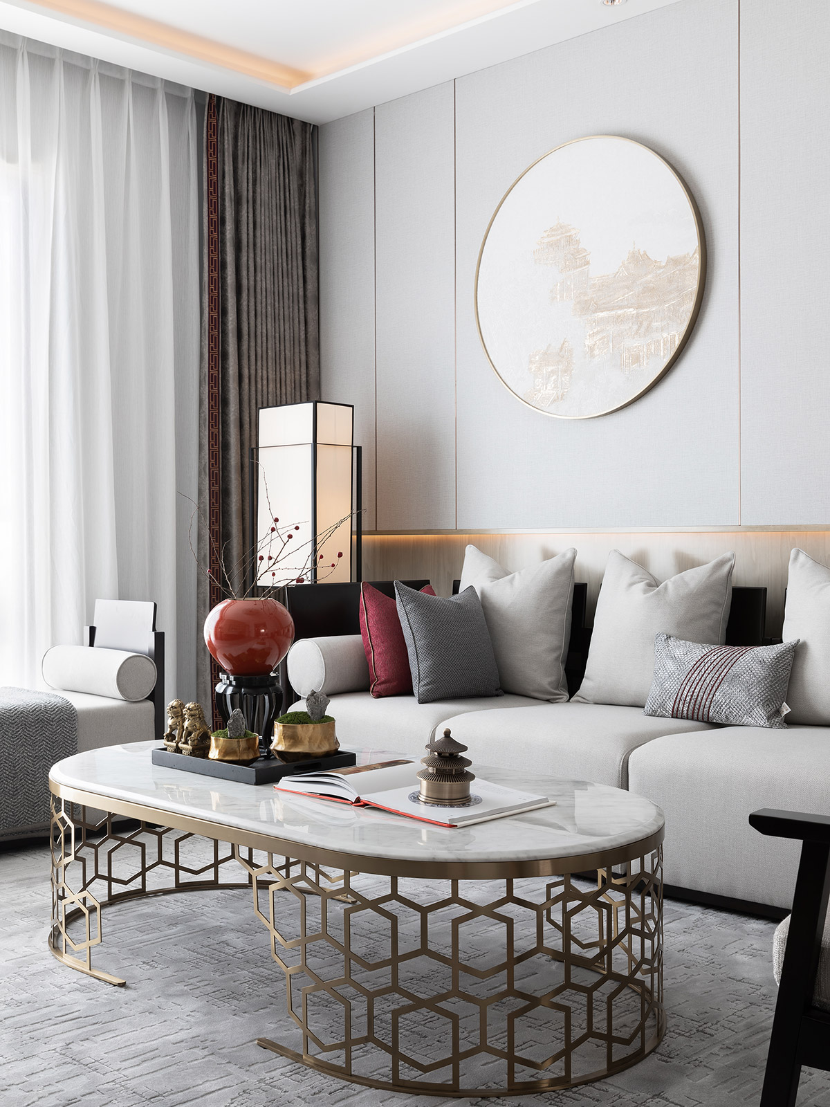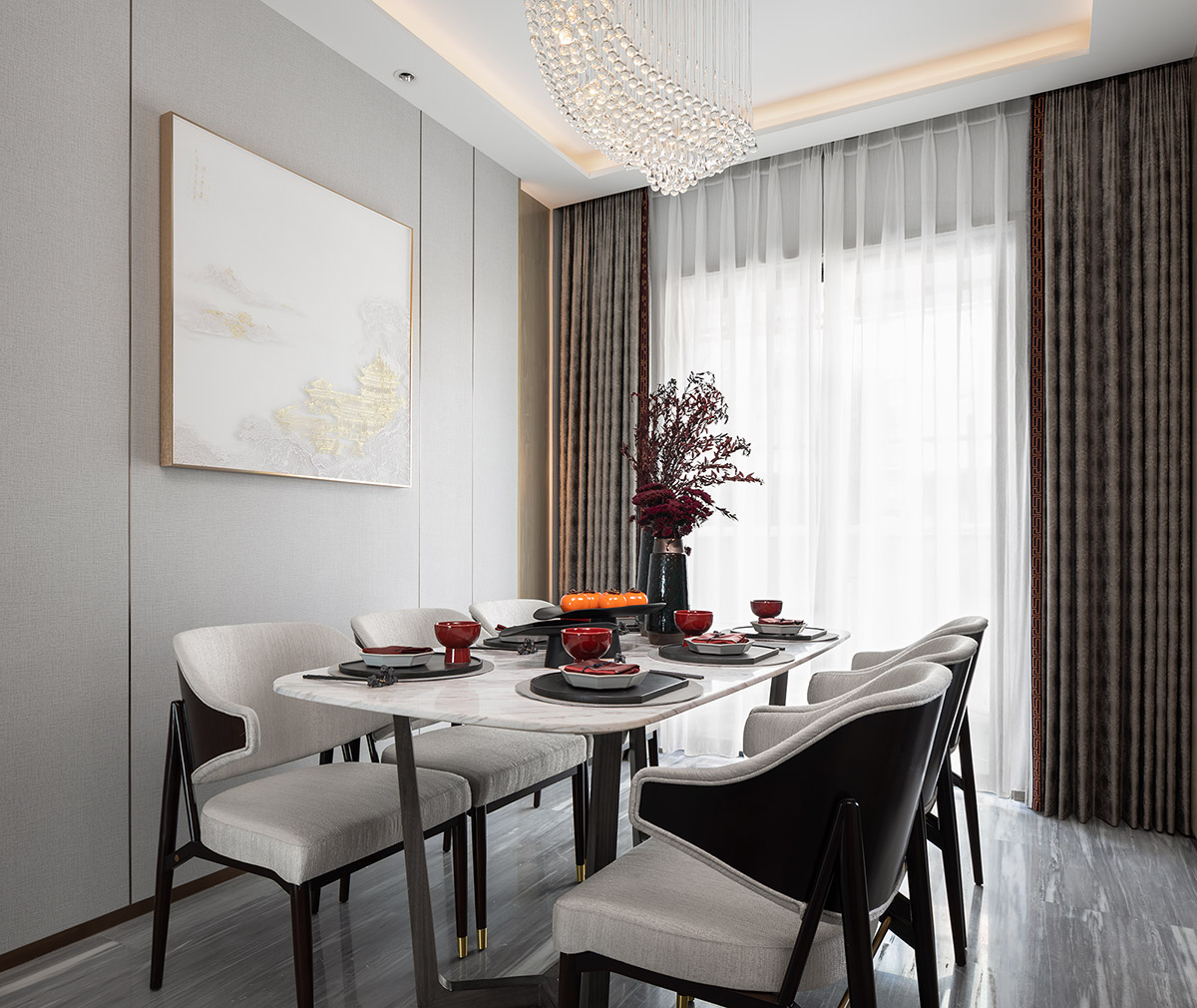 设计汲取东方的温和文雅,活用中式的古意与诗韵,以艺术速写焕然一新的注解,营造出清隽风雅的东方人居范本。