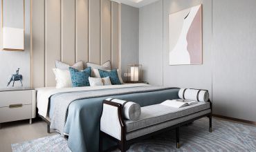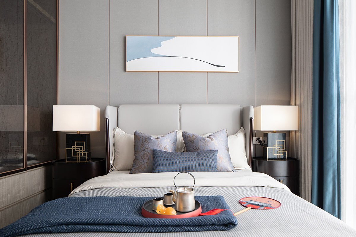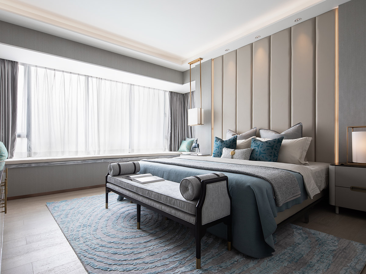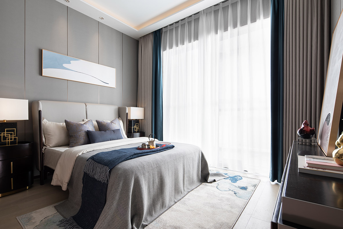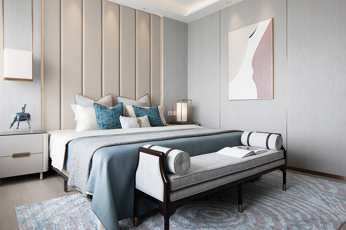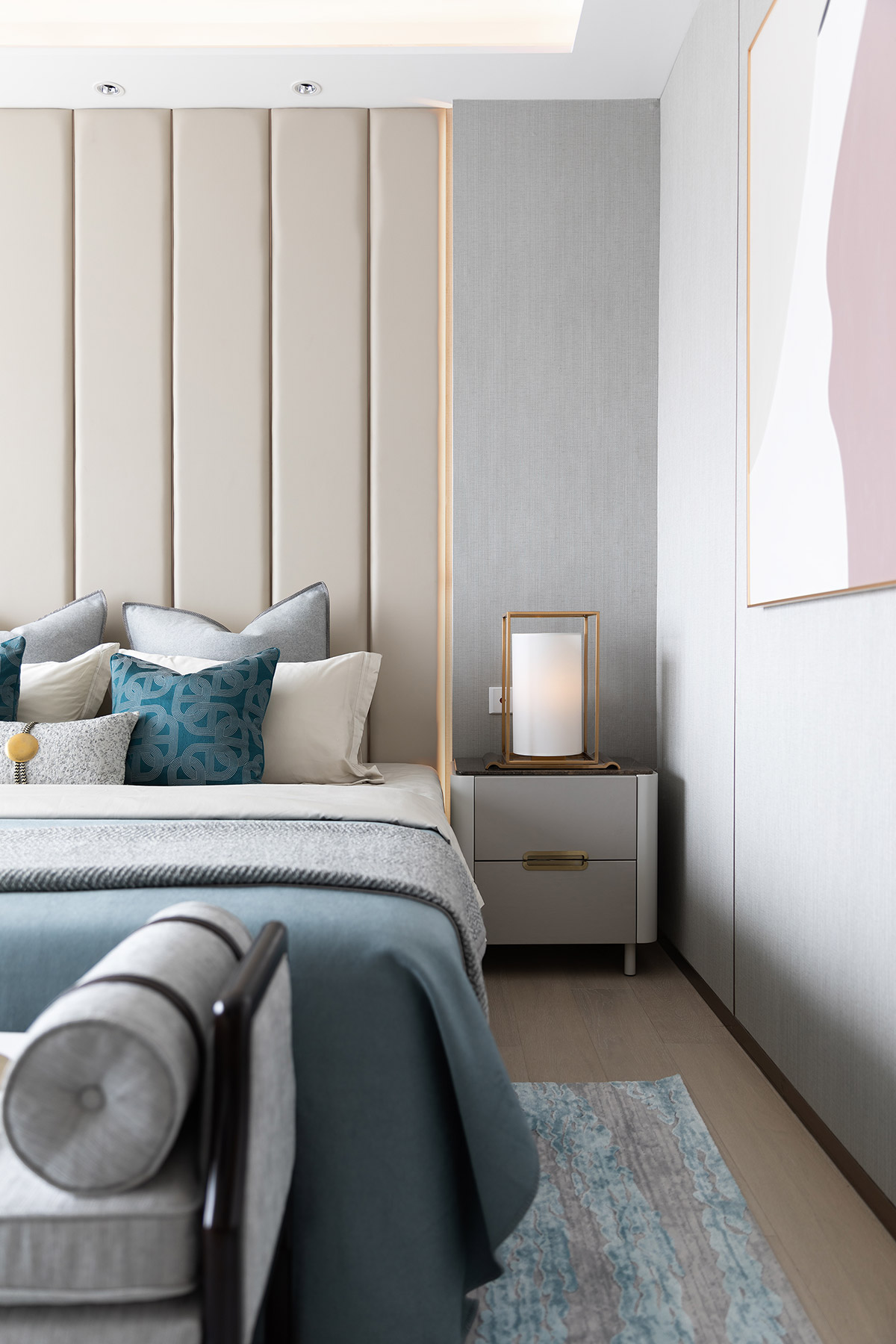 主卧的设计简净大方,经莫兰迪色的渲染,愈显优雅宁静。身居其间,安闲自得,享受给身心带来的舒适与愉悦,自在呼吸。