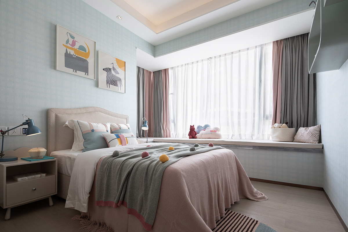 粉色调的儿童房童趣轻柔,携同趣味性的家具饰品,抒写空间的轻快韵律,营造儿童单纯美好的氛围。