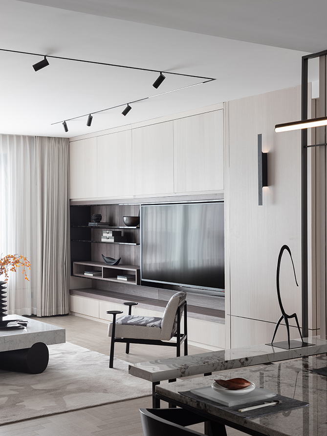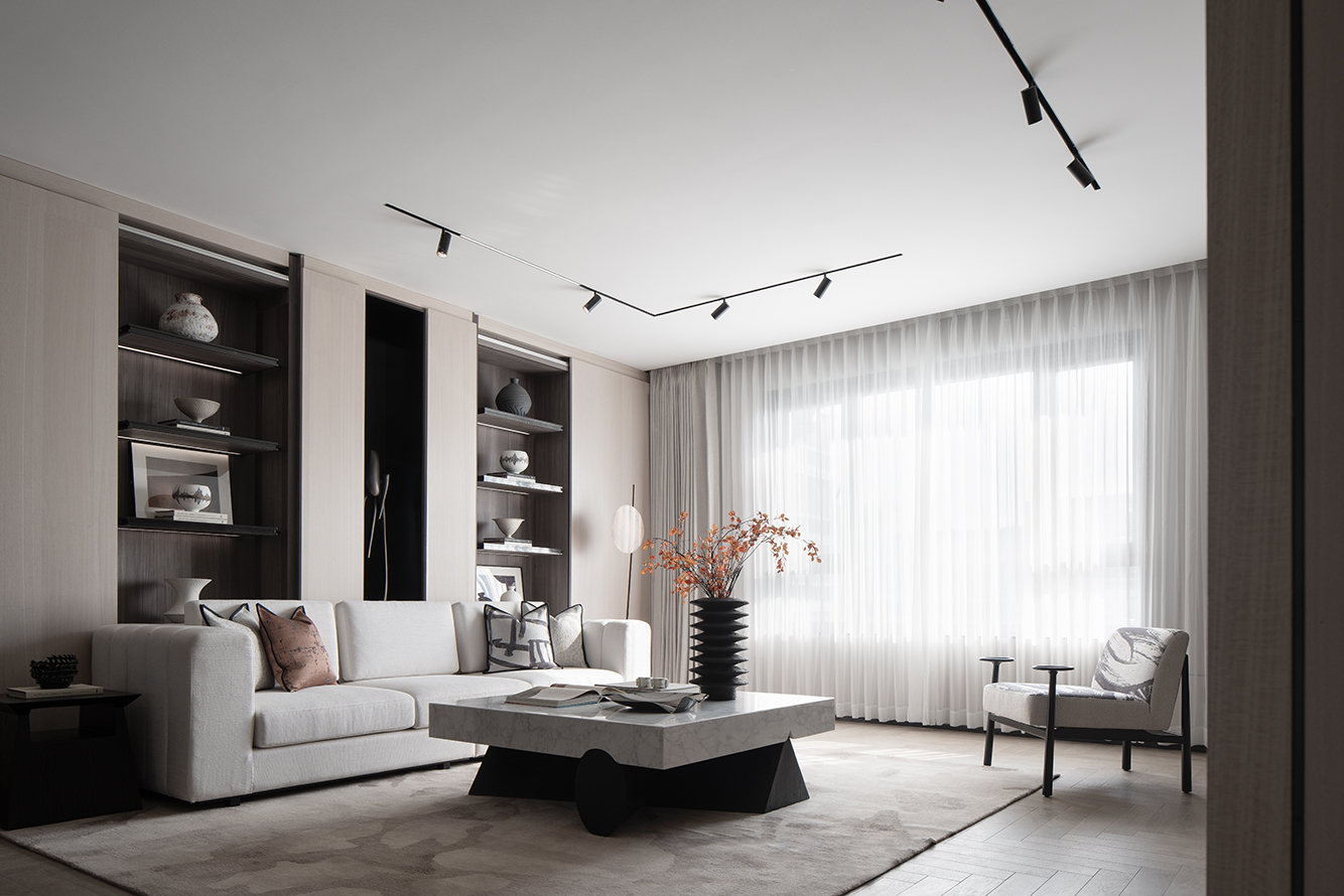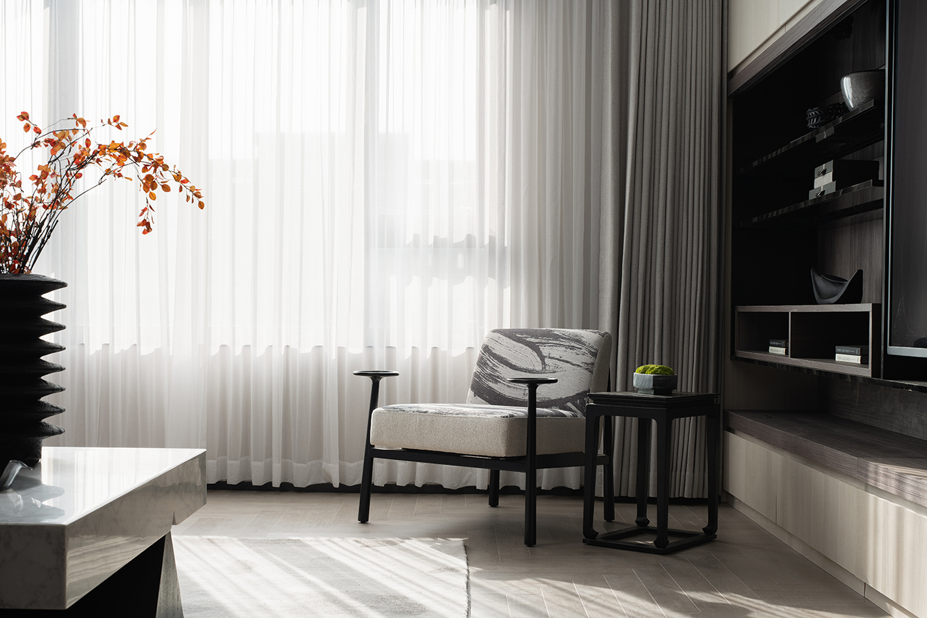 看似“简净”的设计调子,也是设计师对中式美学的独到理解和思考,含蓄里带着清雅,既饱含写意画卷的纵情洒脱,又不失东方神韵的精巧诠释。