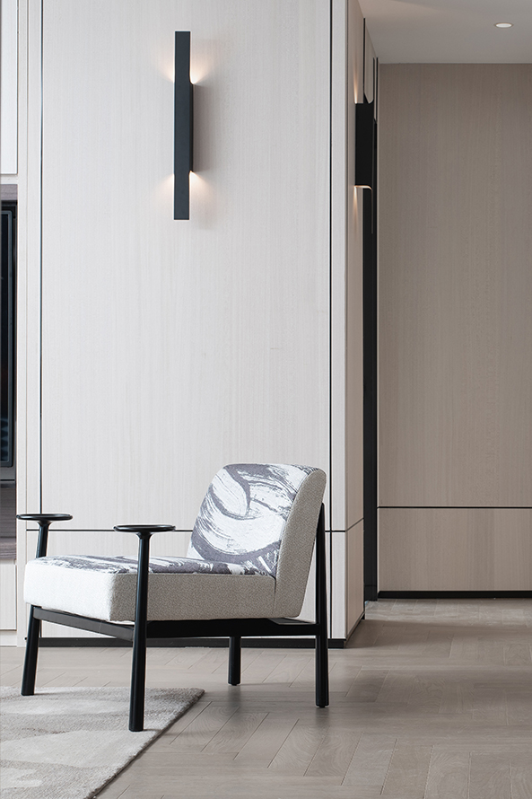 墙纸的设计是以抽象艺术的方式介入空间,不仅重构了传统中式的深远意境,还与整体设计形成了水乳交融、鲜明却又和谐的艺术效果。