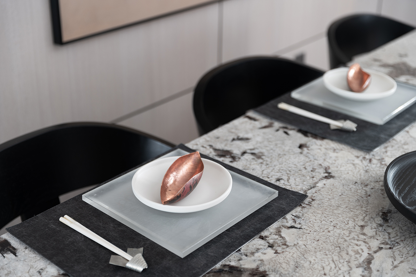 通过对餐具和摆件在色泽、纹理、造型的搭配,将温润的烟火气与清冷的格调结合,展现了舒适又不失格调的生活尺度。