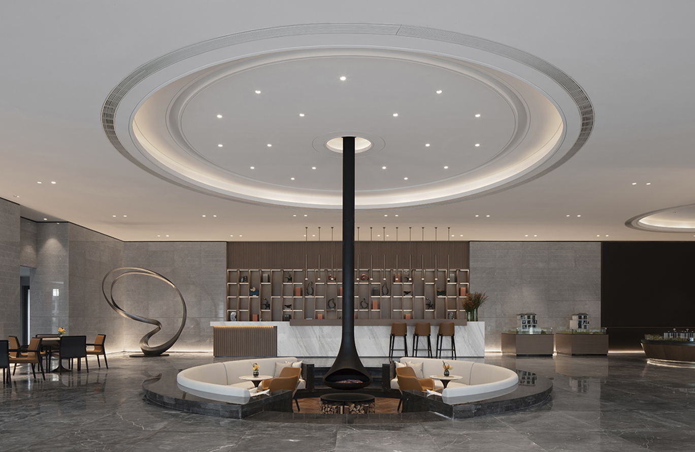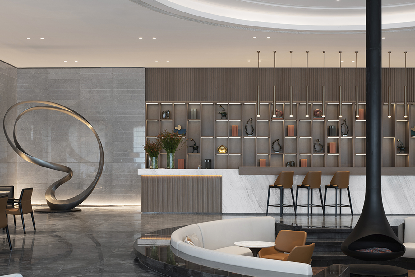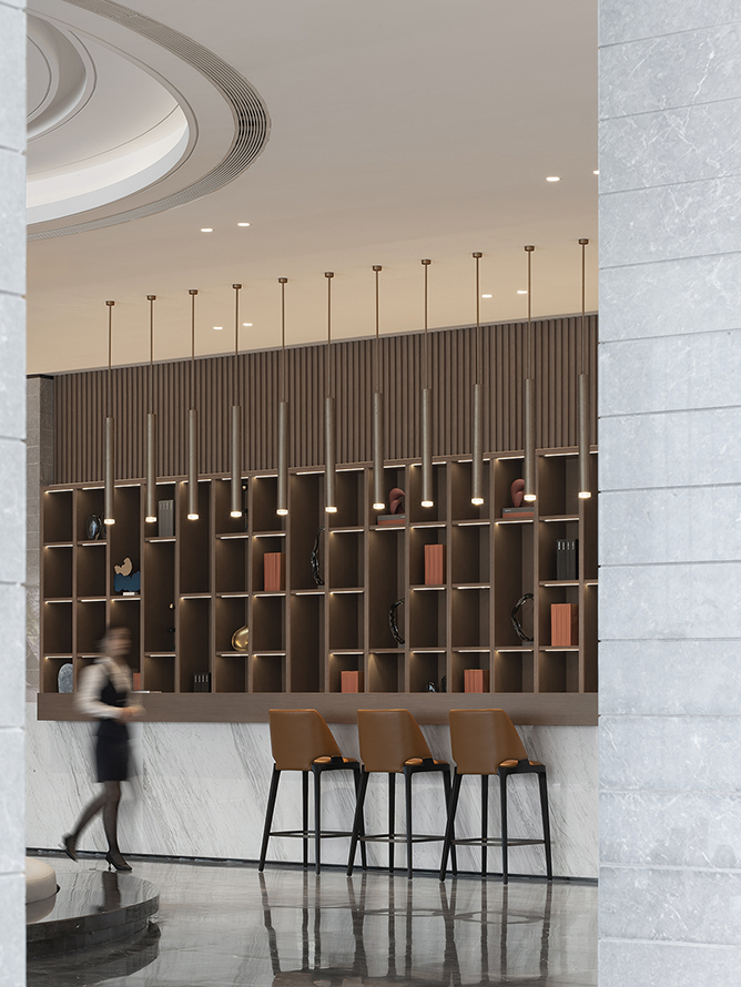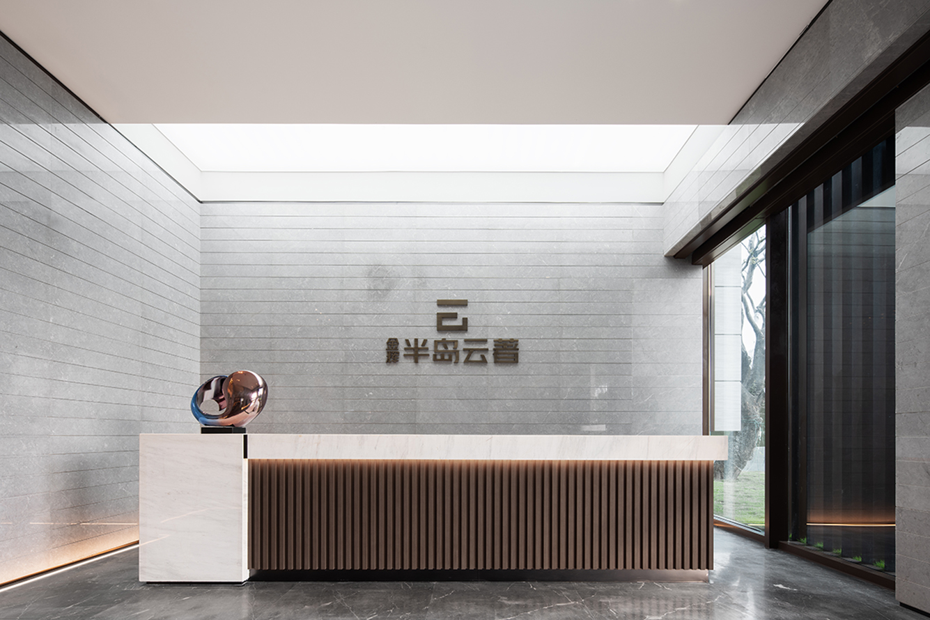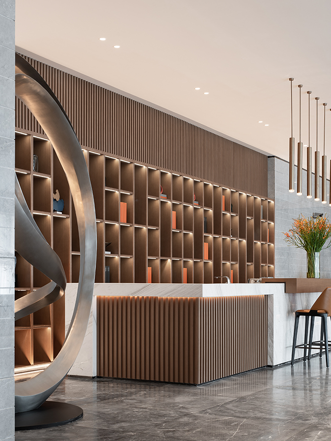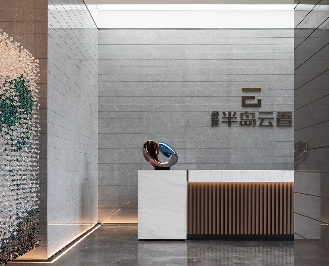 接待区引入自然灵动“树”,运用当地“香榧树”,用一颗颗精灵剔透水晶拼接而成。