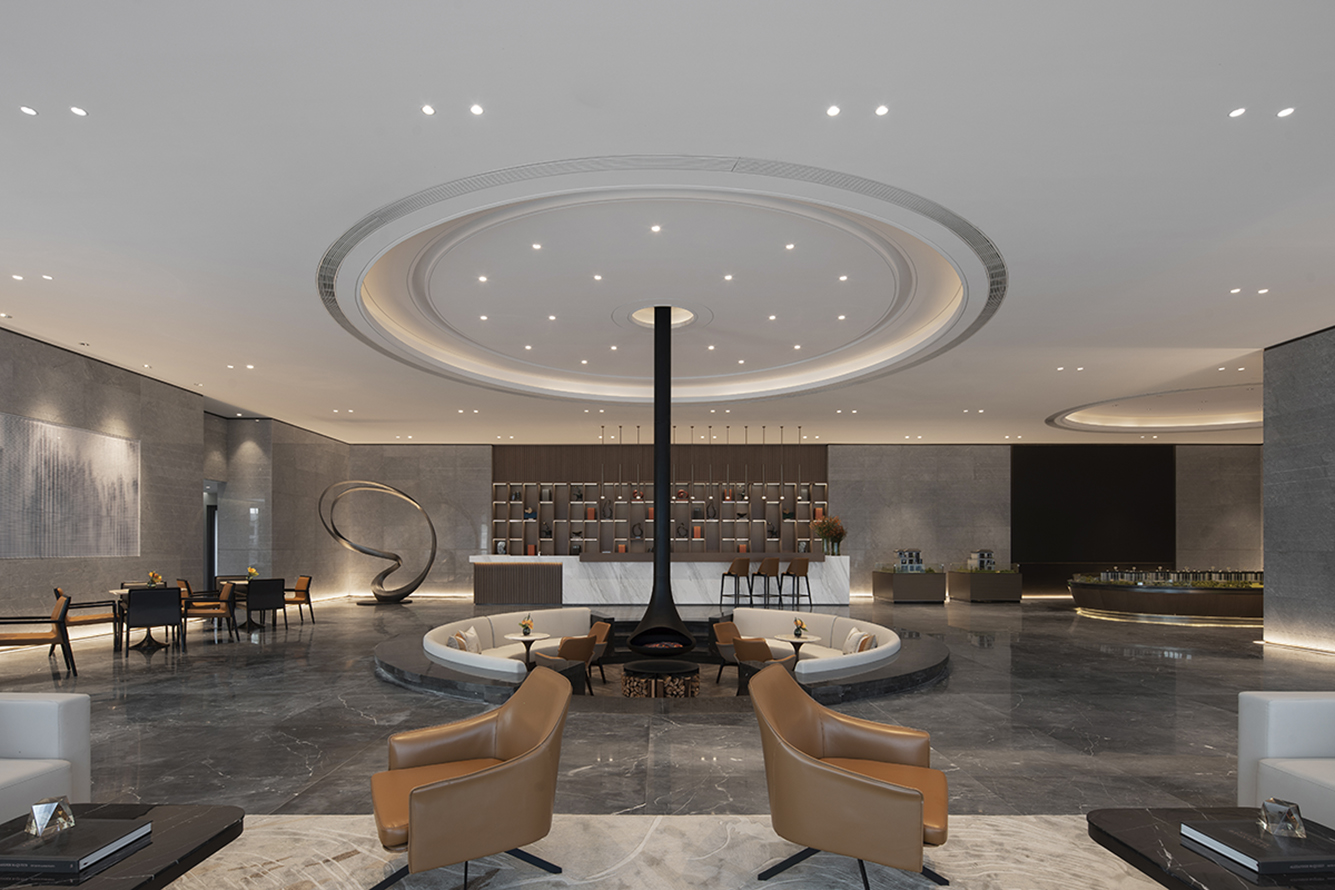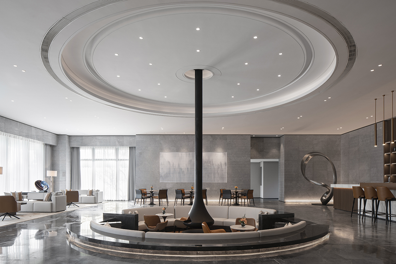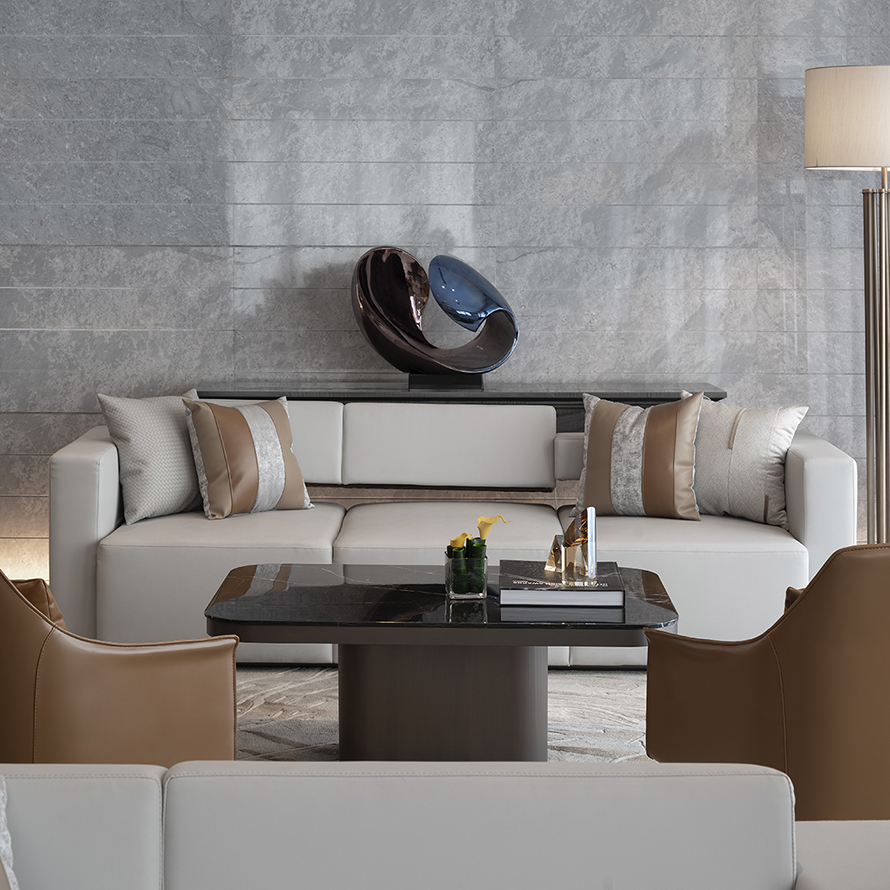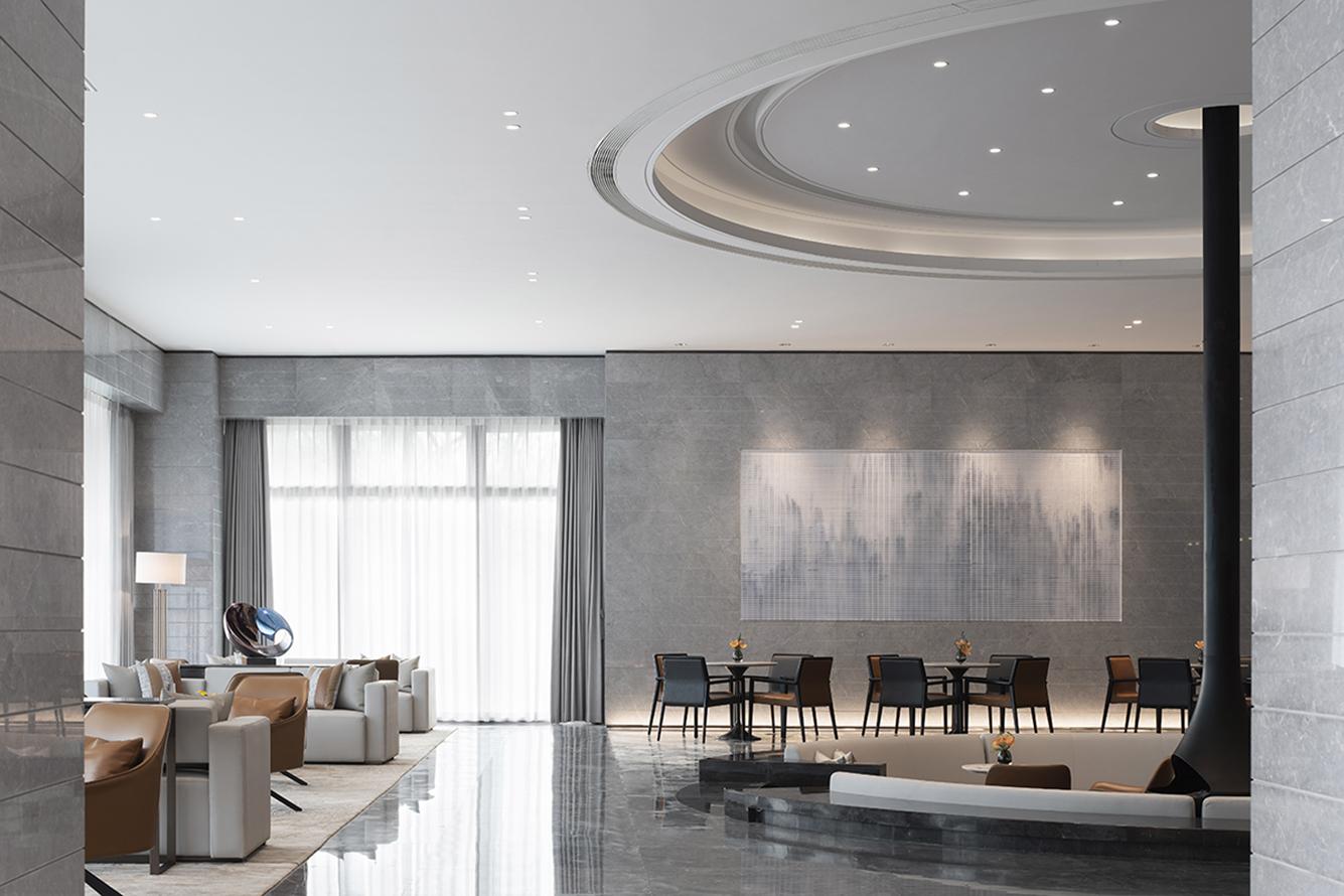整个空间格调明快柔和,造型线条简洁,串入精致金属、亮光石材,暖色皮革,自然木材等奢华材质,组合编织了一个华丽温暖的栖息场所。