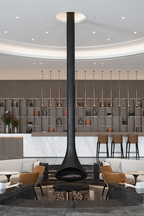 通过景观与室内的分析,我们取景于自然,运用自然中的元素来建造极具自然雅致的气氛,让自然与人文结合来释放一种平衡和现代的元素,打造一个静谧富有诗意的空间,传达自然融于空间。