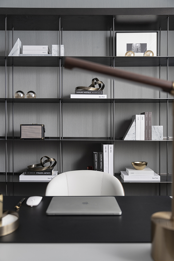 在不同功能的领域划分中,软装的陈设有着截然不同的空间表达。书房正是兼顾形式美感与实际需要,让时光与饰品互相交融,塑造出从容而儒雅的书房空间旋律。