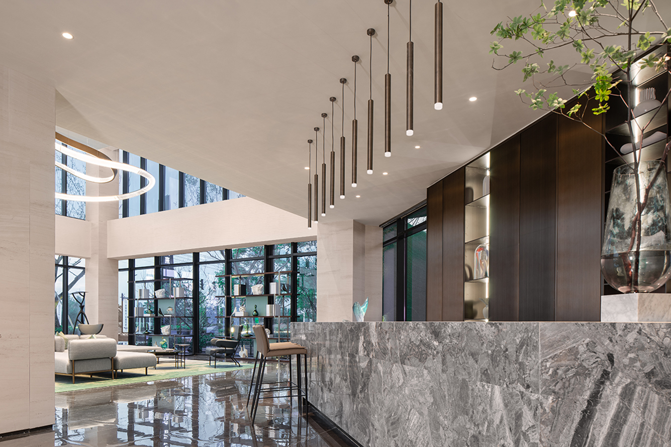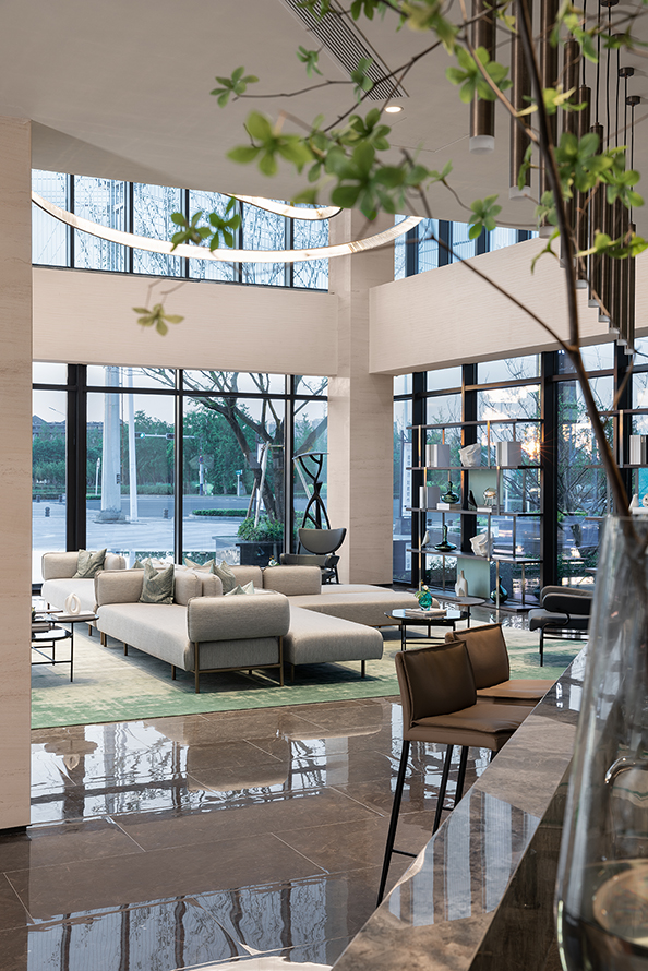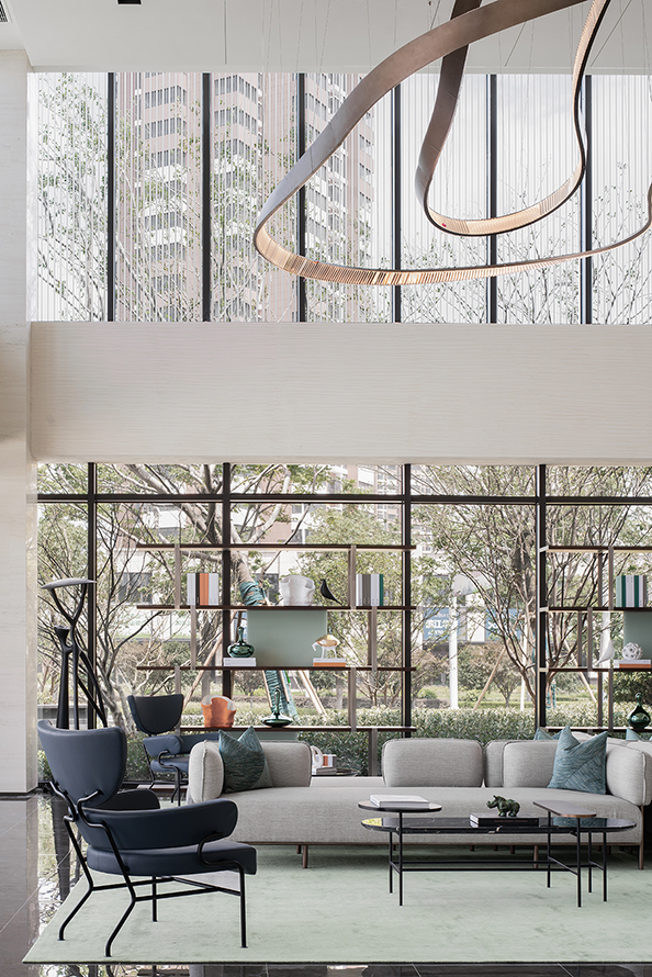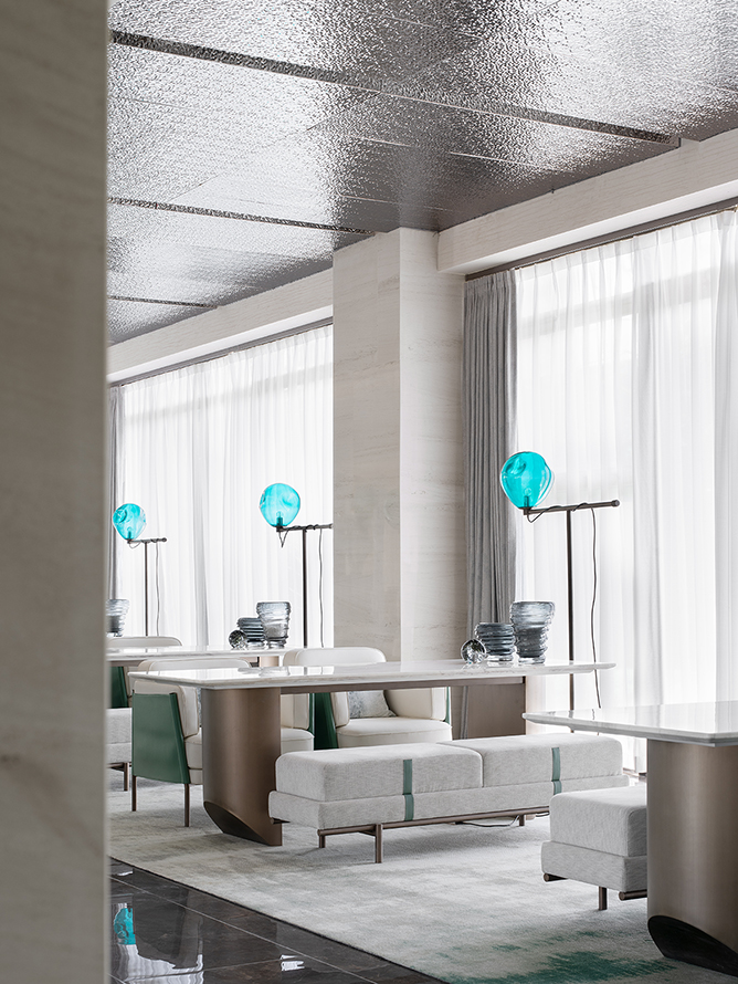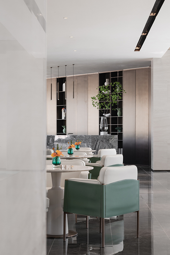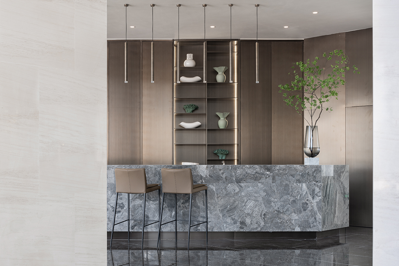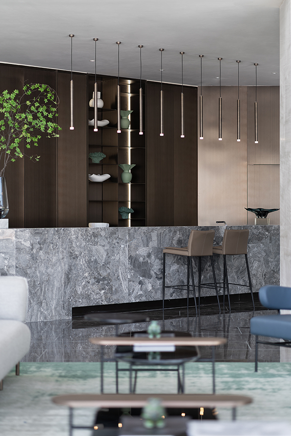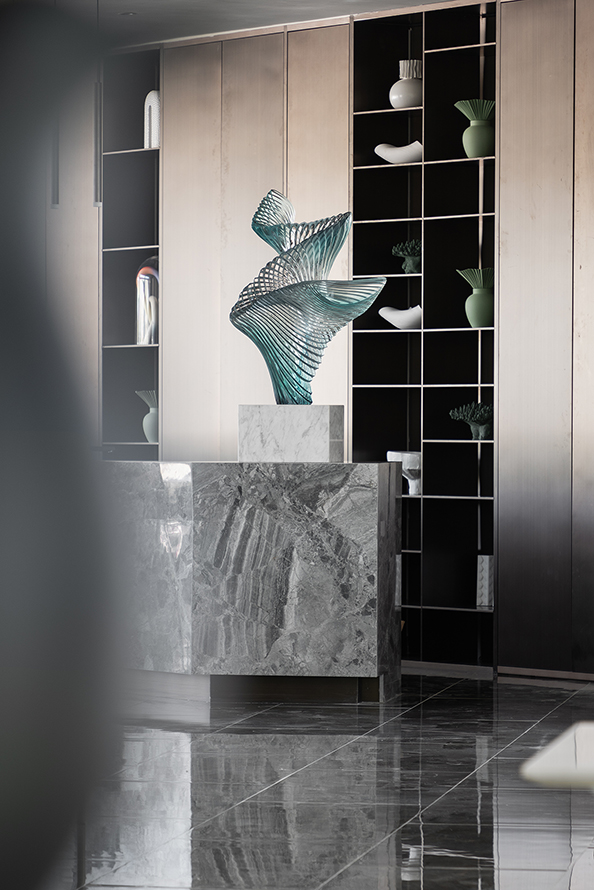并与墙面的艺术装置呈现出动静相宜的灵动感。