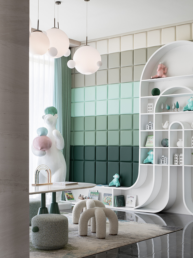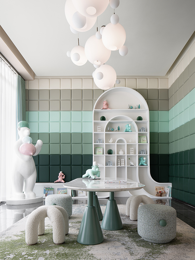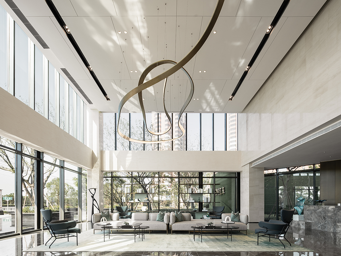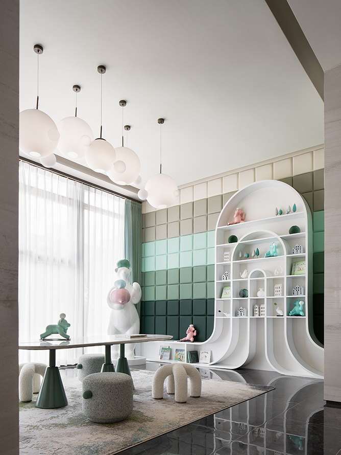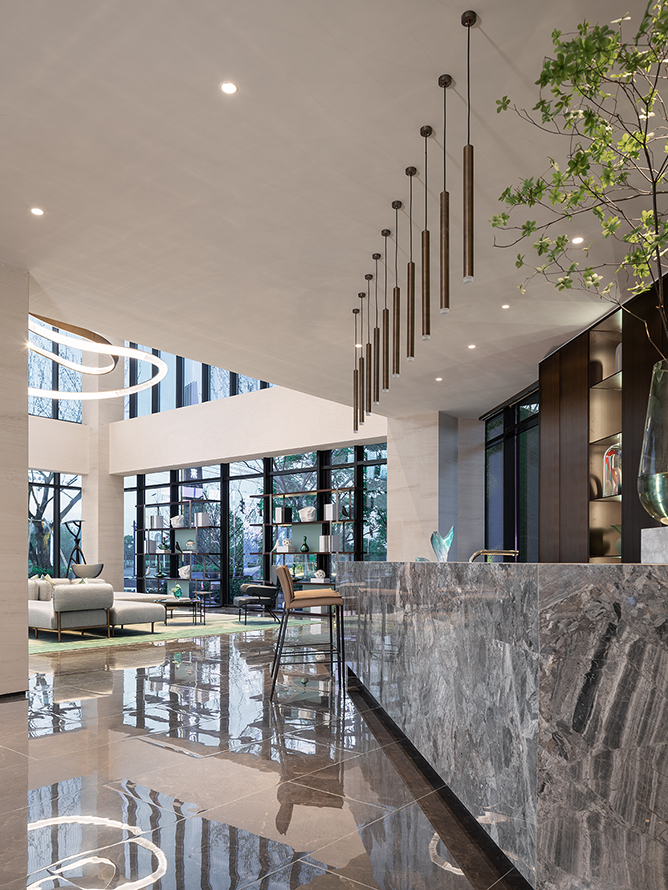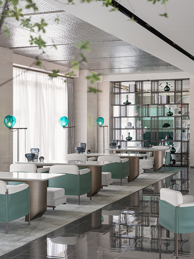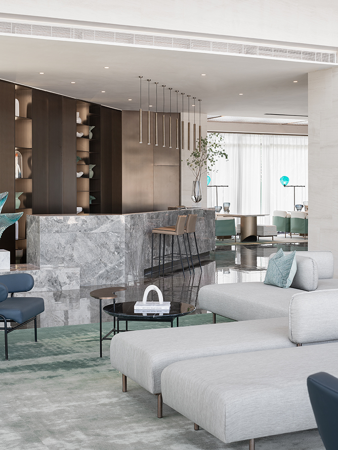 并与墙面的艺术装置呈现出动静相宜的灵动感。