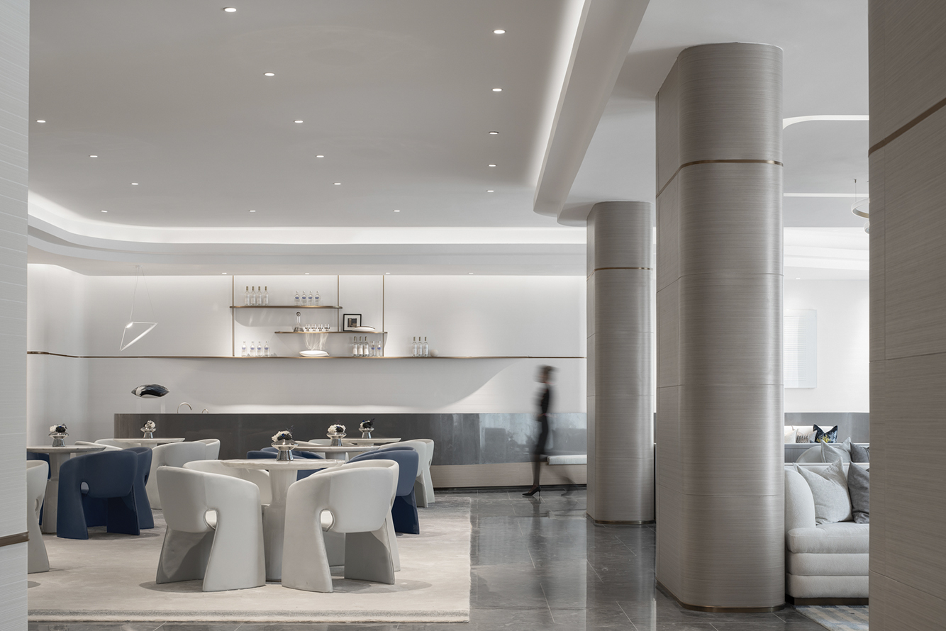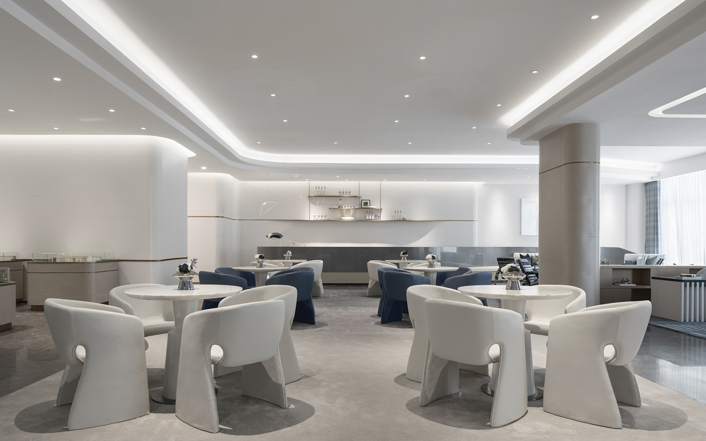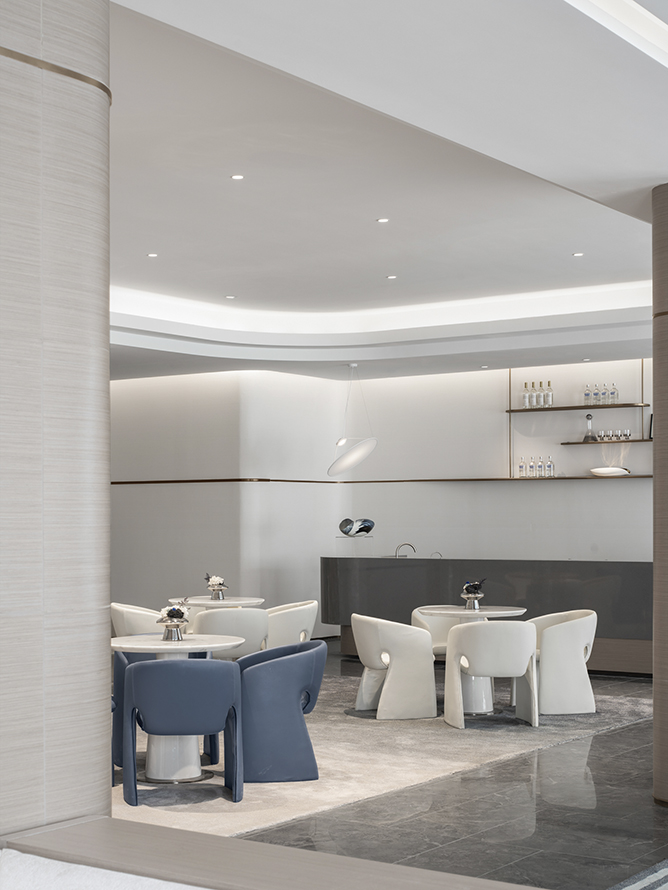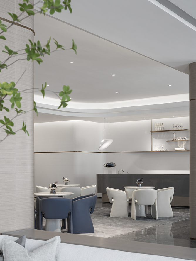 VIP洽谈区里,边界的消隐打破了僵硬的空间分割。