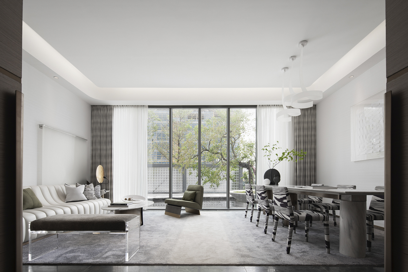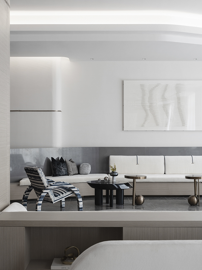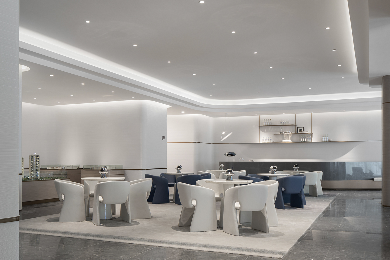 VIP洽谈区里,边界的消隐打破了僵硬的空间分割。