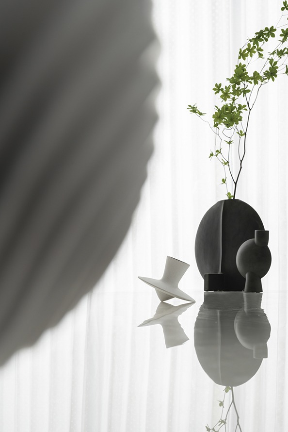 器皿倒映在桌面上,似乎可以见到了灵性的树枝与浩瀚的星空,仿佛一个梦幻小空间。