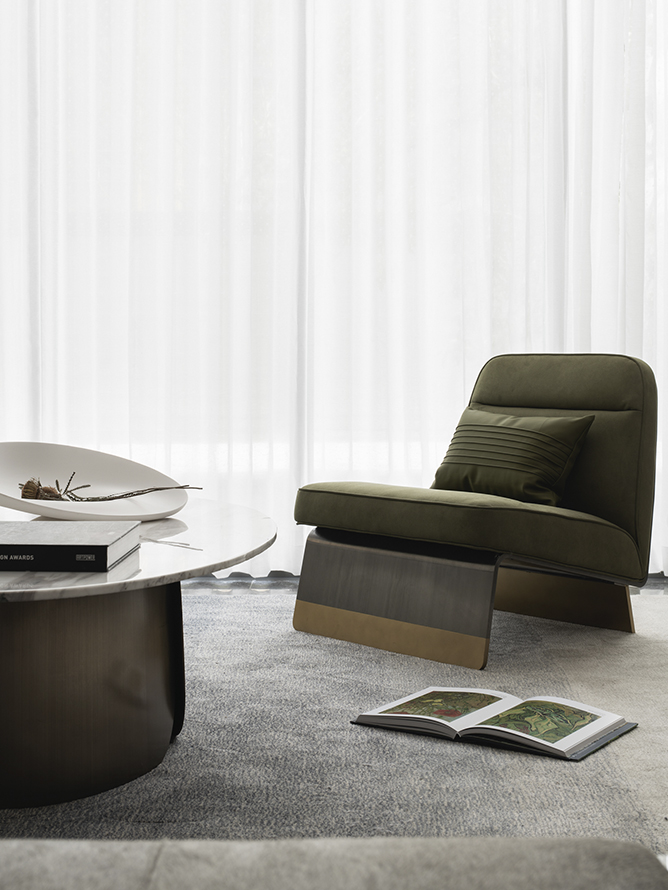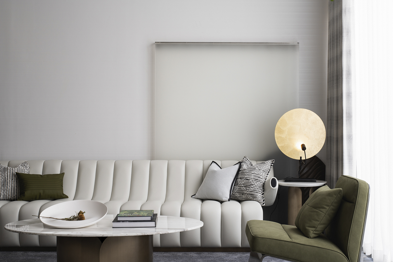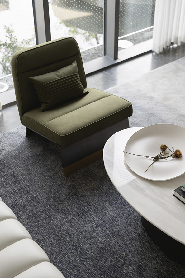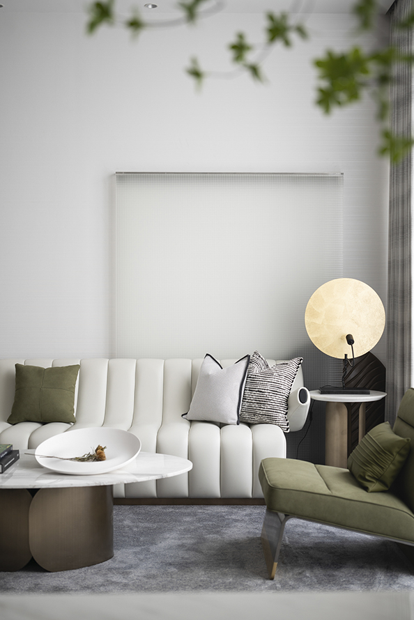 植物的点缀,以及与草绿色沙发的互相呼应,让整个室内空间和功能相互渗透,使人享受全身心在其中的体验。